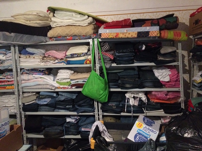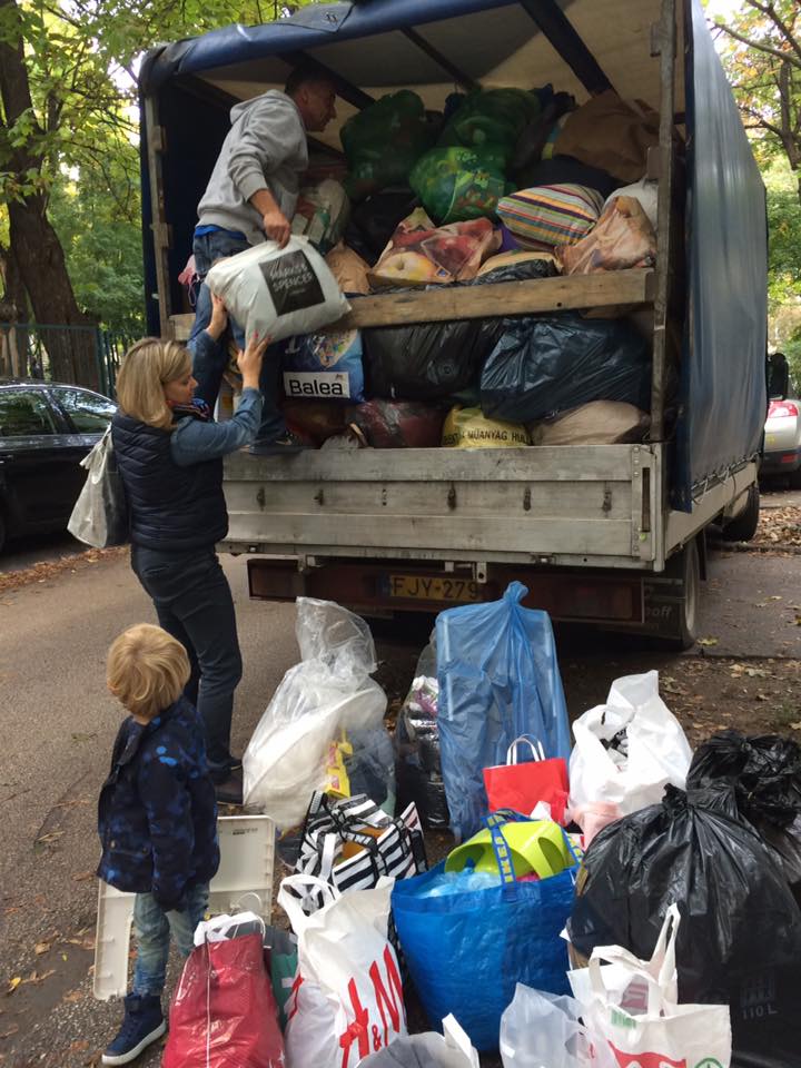 Vannak fővárosi gyűjtőpontok is, hiszen a legtöbb adomány innen érkezik, ahol leadható az adomány. Ezekkel a helyzet változó. Az ellenőrzés nélkül „leöntött” adományok között mindig sok van, ami inkább szemét. Piszkos, szakadt ruhák, táskák, fél pár cipők, használt pelenkák, mindenféle rossz tapasztalatunk van már. Ahol a gyűjtőponton van átvevő, ott megint pozitívabb a kép, oda jobb, használhatóbb holmikat visznek. Innen le kell szállítani még a ruhákat vidékre.
